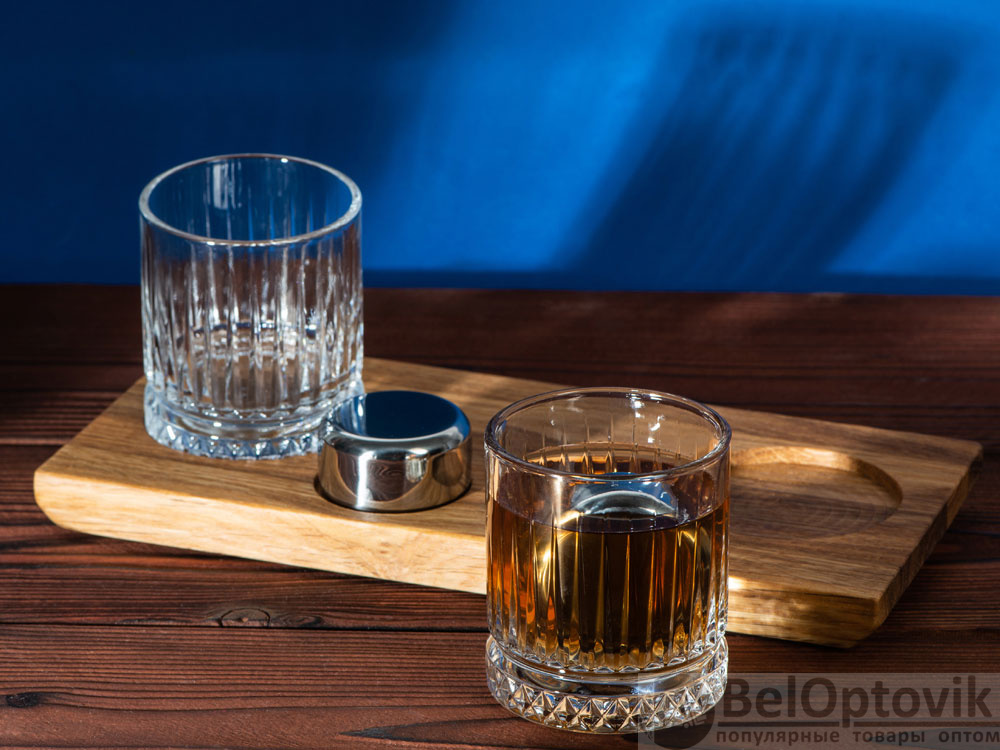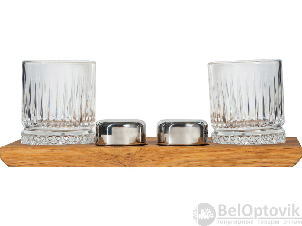 - Комплектность: деревянная подставка 28,5 х 12,9 х 2,1 см, бокал 210 мл- 2 шт, шайба для виски d5 х 2,8 см- 2 шт, упаковочная коробка