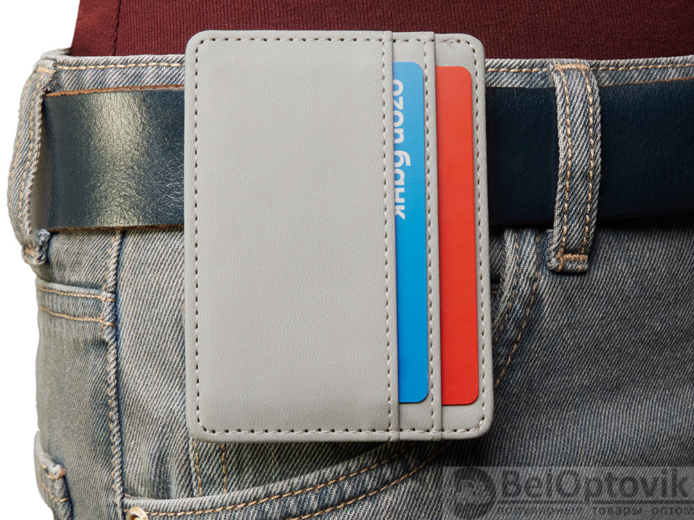 Картхолдер — стильное и практичное решение для деловых людей. В отличие от классических кошельков и портмоне он занимает совсем немного места и с лёгкостью поместится в карман. Данная модель благодаря зажиму на обороте также удобно цепляется за ремень джинс или на ланъярд.