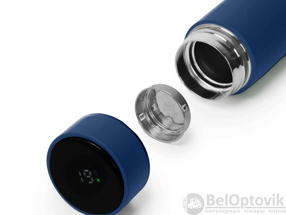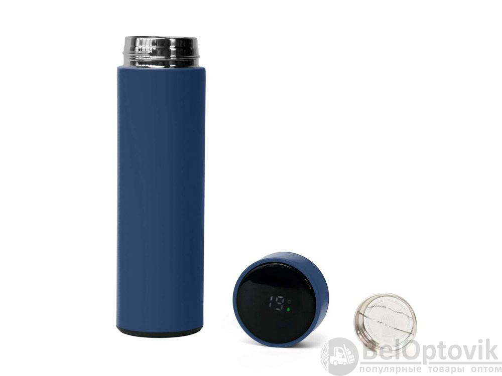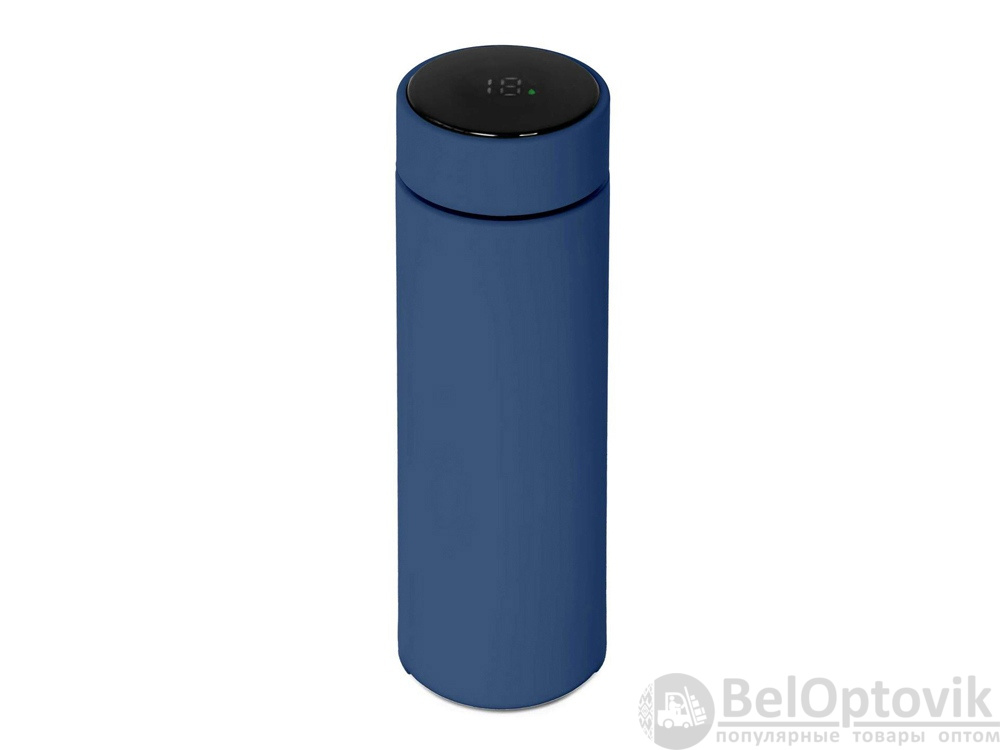 Термос из нержавеющей стали, покрытый цветным soft touch, с крышкой, в которой встроен термометр и LED дисплей, показывающий температуру внутри термоса. Объем: 500 мл. Упаковка: каждый термос в крафт коробке.