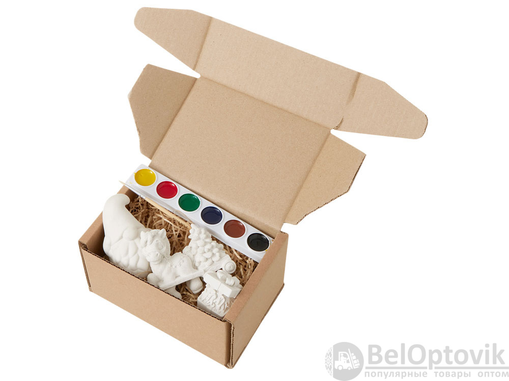 - Комплектность: 3 гипсовых фигурки, акварельные краски, 1 кисточка