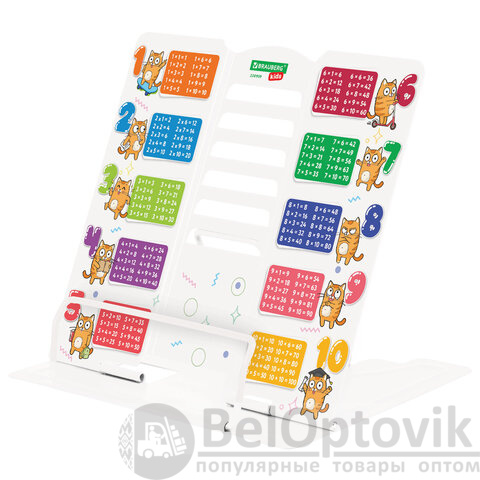 Подставка полностью выполнена из металла, поэтому отлично подойдет для надежной фиксации тяжелых и объемных учебных материалов и книг. Оригинальный дизайн понравится школьнику любого возраста, таблица умножения будет полезна в учебе. Регулируемый угол наклона обеспечивает удобство при работе с текстом, облегчает чтение и выполнение домашней работы.