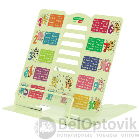 Подставка для книг и учебников большая BRAUBERG KIDS "Animals" с таблицей умножения, регулируемый угол наклона, металлическая, 238960