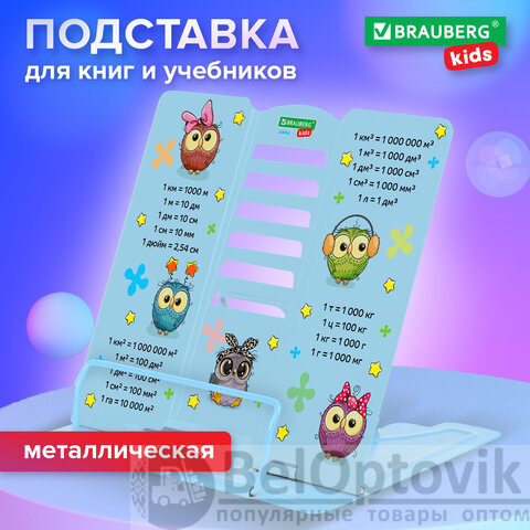 Подставка для книг и учебников большая BRAUBERG KIDS "Cute Owl" с единицами измерения, регулируемый угол наклона, металлическая, 238962