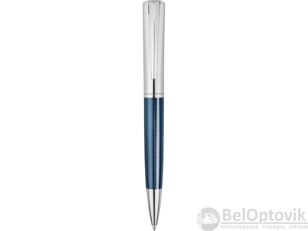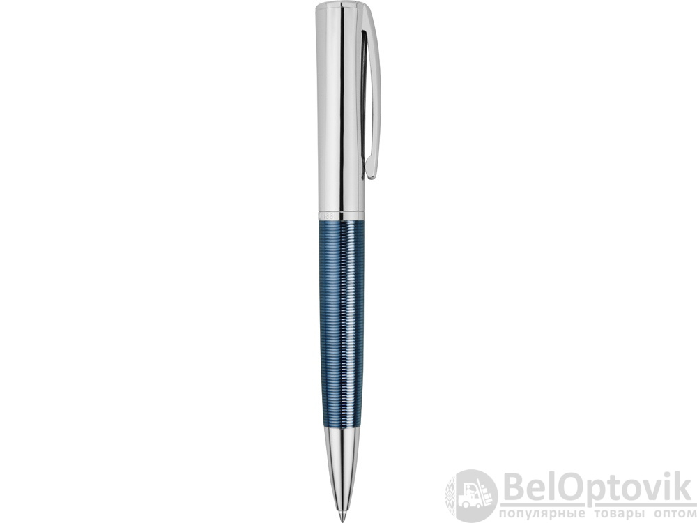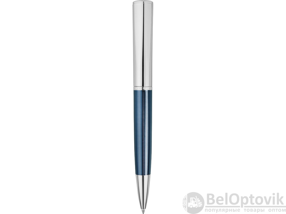 Утолщенная латунная ручка «Conquest Blue» будет прекрасно смотреться в крупных мужских руках. Стильный дизайн, основанный на сочетании синего и серебристого цветов, хорошо подходит к расцветке делового костюма.