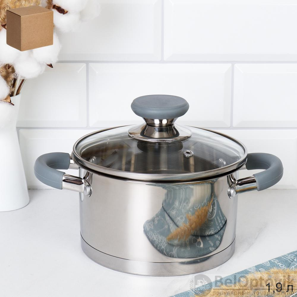 Кастрюля 1.9 л Евро / LB-S-1931B-8C 1,9 /уп 1/ индукция/ ручки с силиконом/ Гофрокороб/ KISIGA