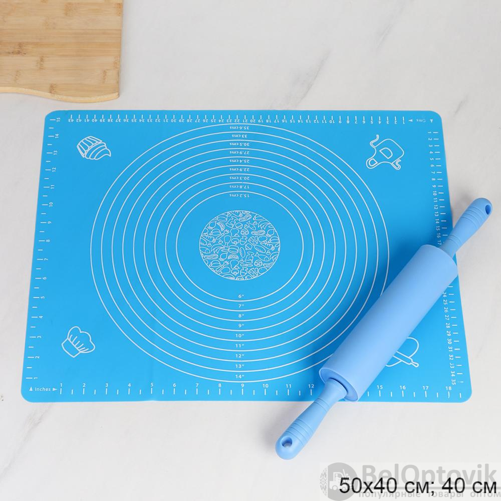 Кондитерский набор Силиконовый коврик 50х40 см и скалка / GY-633-E+GR-476 Голубой