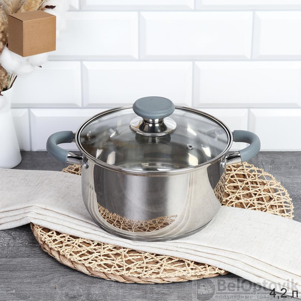 Кастрюля 4,2 л Элиос / LB-S-1106-8B-4,2 /уп 1/ индукция/ ручки с силиконом/ Гофрокороб/ KISIGA