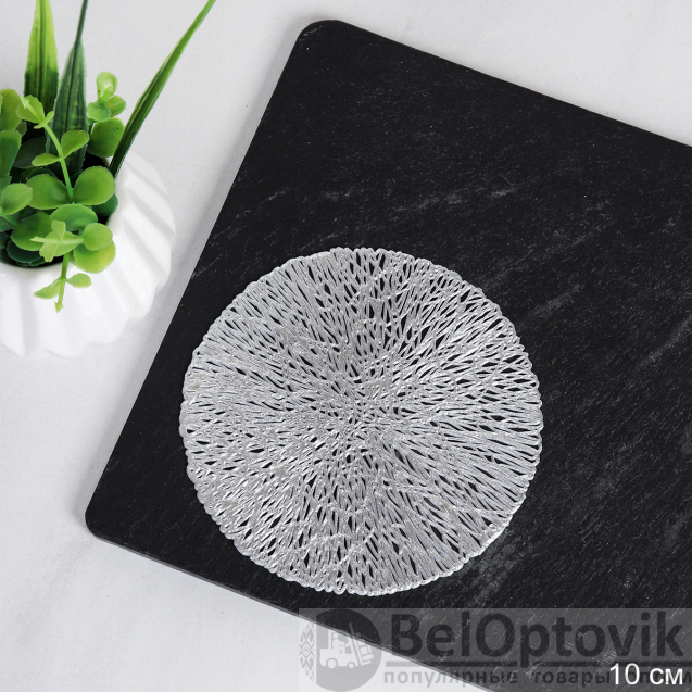 Подставка под кружку 10 см АКЦИЯ / WR42 /уп 1/ ШТУЧНО серебро
