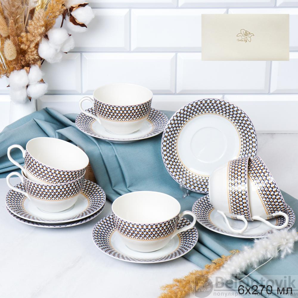 Чайный набор 12 предметов 270 мл тонкостенный / LY-1348D /уп 8/ Сеточка
