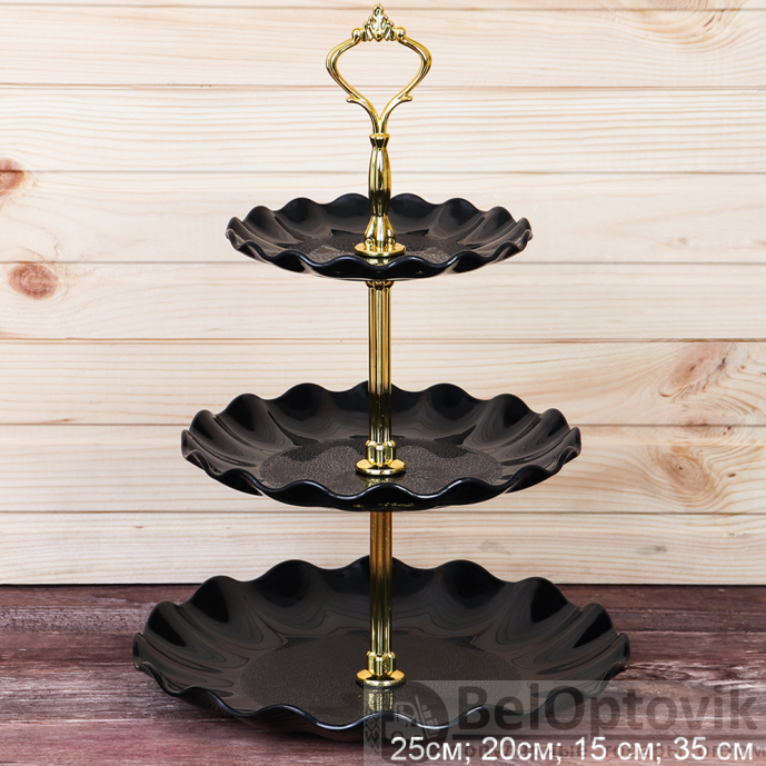 Ваза для фруктов 2-х ярусная 20/25 Круг Волна черная / D-1251 / Пластик