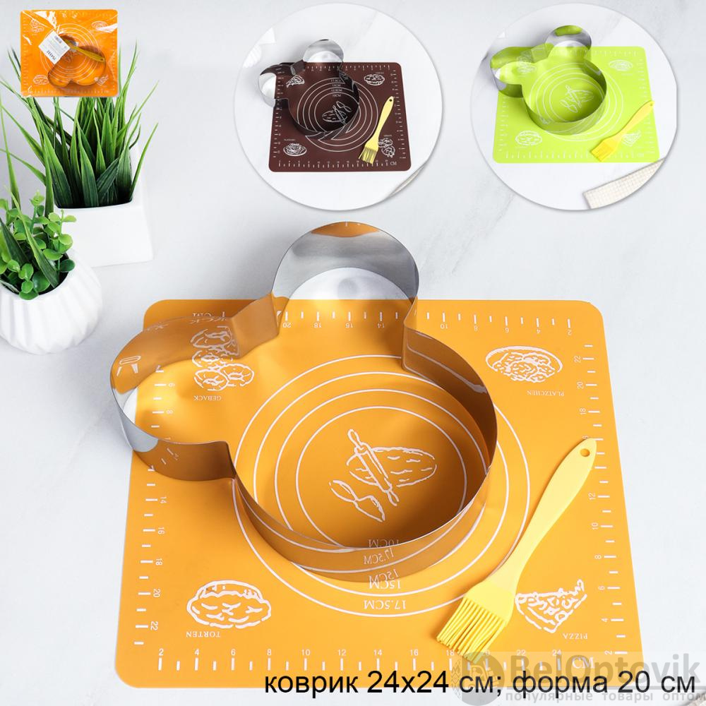 Кондитерский набор силиконовый коврик + форма для бисквита Мышка 20 см + кисточка / JH-142 /уп /