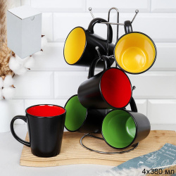 Кружка набор 6 штук на металлстенде 380 мл Конус Эфиопия / HJ-46 /АКЦИЯ/Светофор