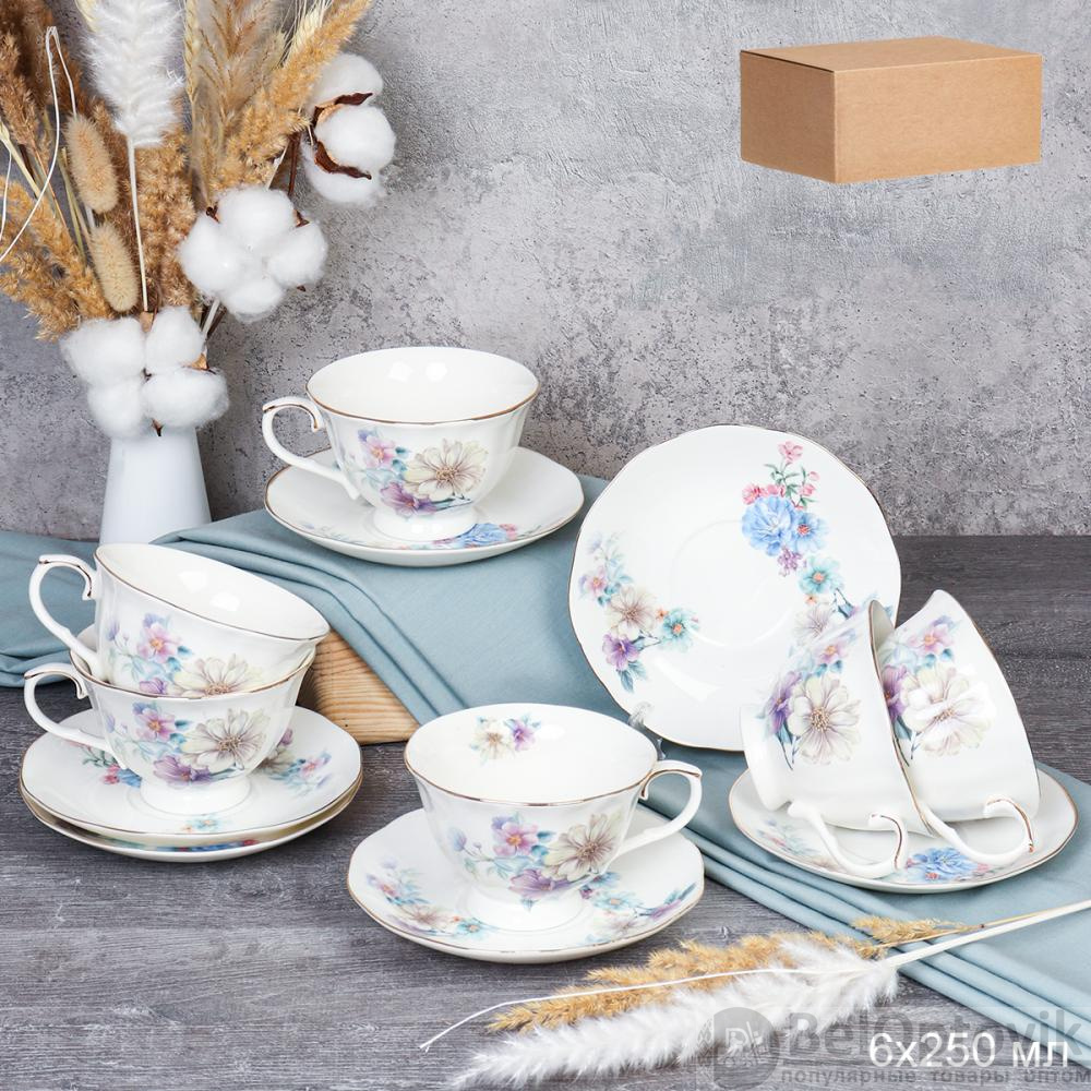 Чайный набор 12 предметов 250 мл на ножке / RS/12-FY230904 Grey /уп 8/