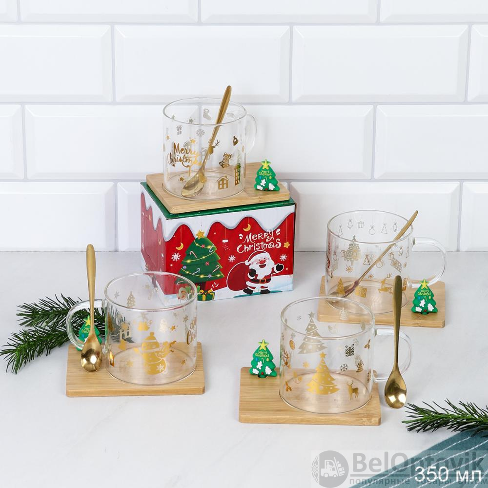 Чайный набор 2 предмета кружка 350 мл с ложкой на деревянной подставке АКЦИЯ / HB-B5023 /уп 80/