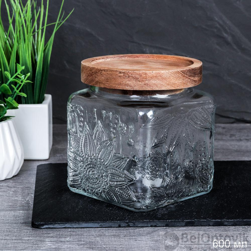 Банка для сыпучих бамбуковая крышка 600 мл / BKN500 /уп 45/ резная