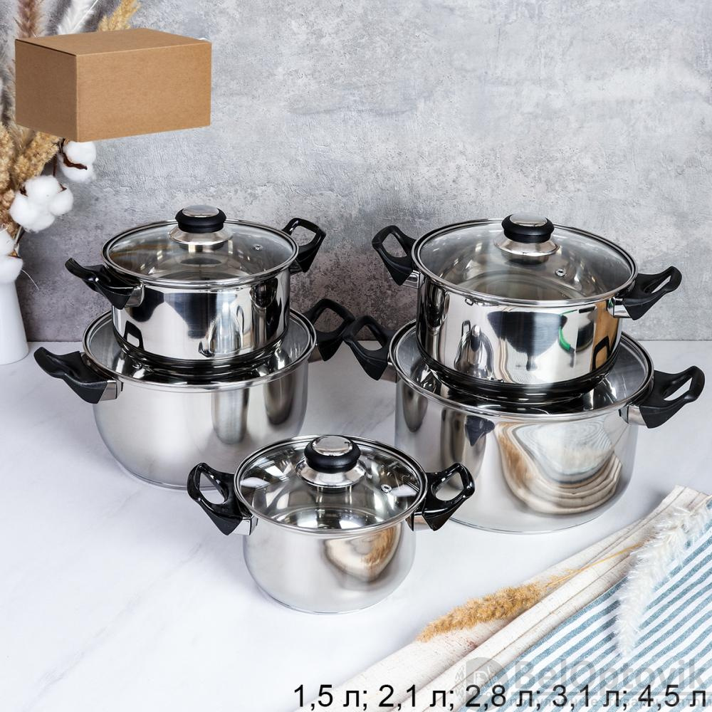 Кастрюля набор 10 предметов 1.5л,2.2л,3,1л,3,8л,5,5л Лайт / LB-10-10A /уп 1/ Ручки бакелит/ Гофрокороб/ KISIGA