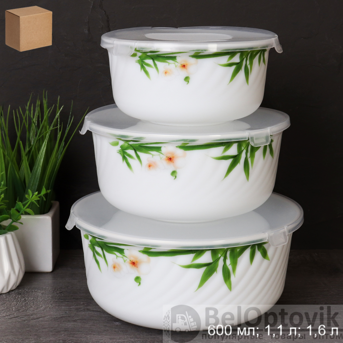 Форма для холодца с крышкой 3 предмета / GRAY-HDW3B (6773) /уп 12/ Бамбук с орхидеей/727999