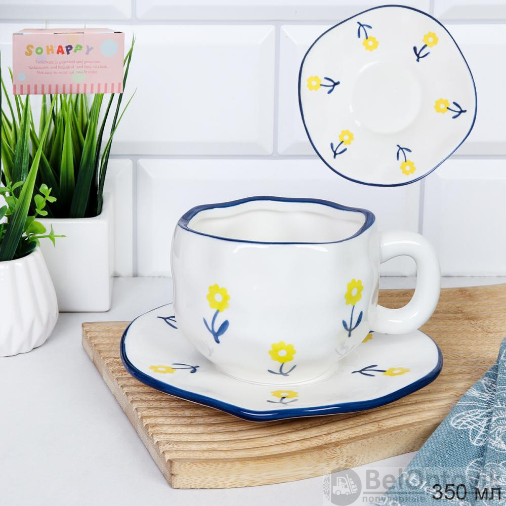 Чайная пара 350 мл 2 предмета / QL8039 /уп 48/ Одуванчик