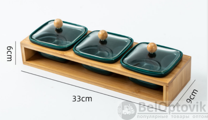 Менажница 3 предмета с крышками / KT151 /уп 20/ на подставке