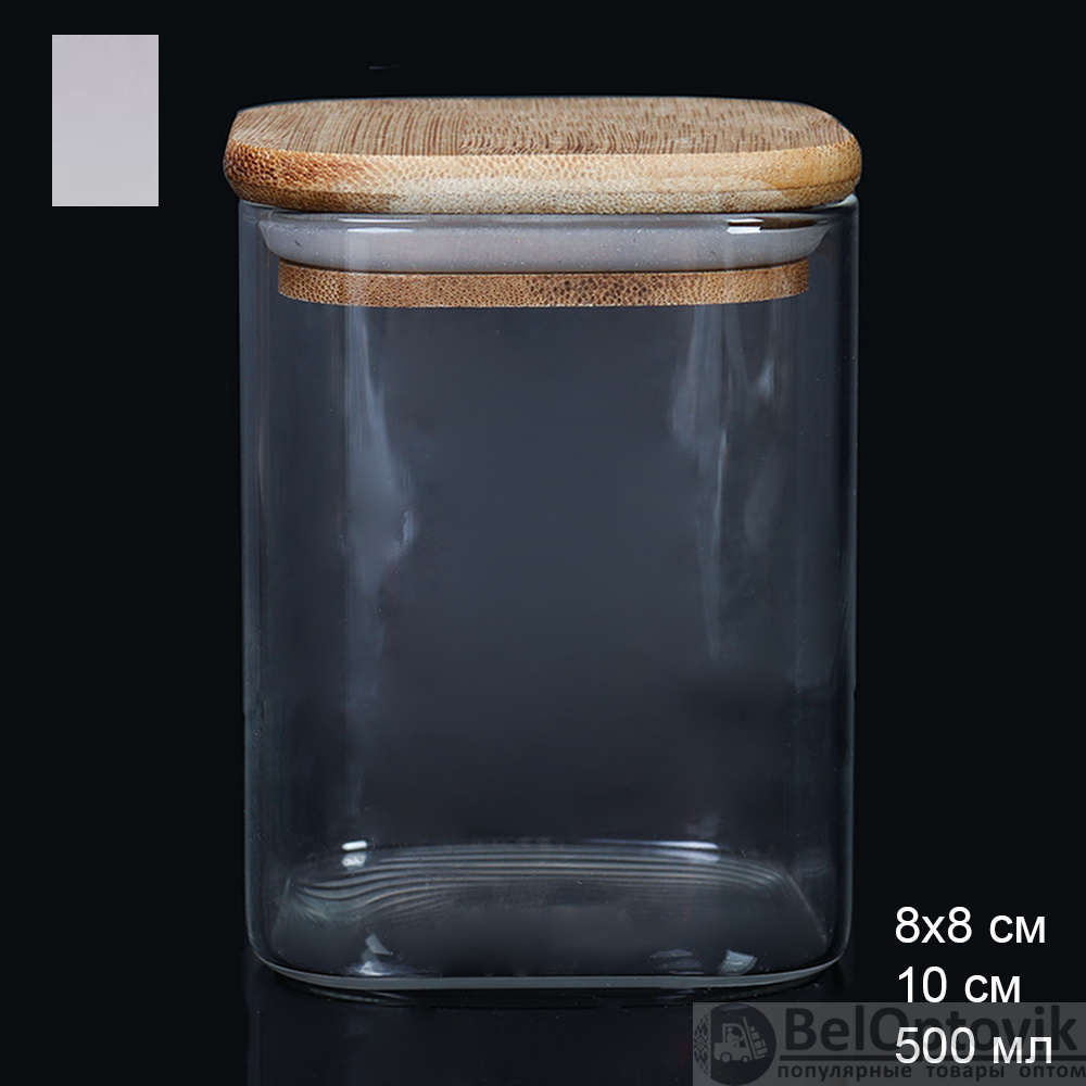 Банка квадратная бамбуковая крышка 500 мл диаметр 80/10 см / LCSC3701 /уп 120/