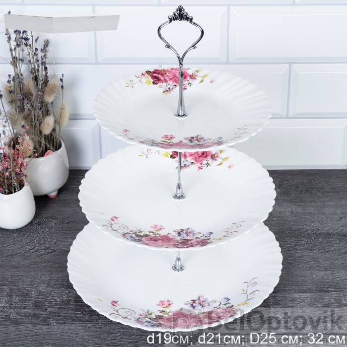 Ваза для фруктов 2-х ярусная 21 см 25 см / Розовая композиция