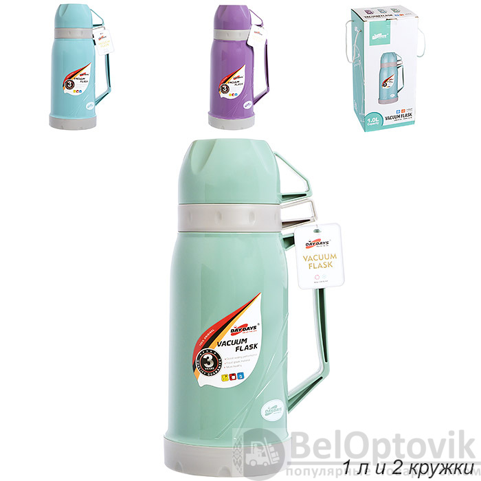 Термос 1 л со стеклянной колбой / EA-100 /уп 12/ 2 кружки в комплекте