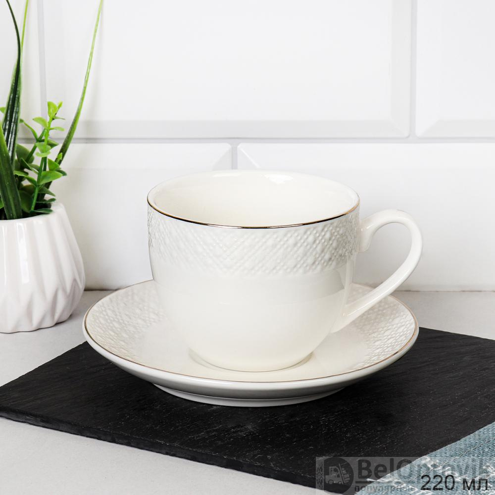 Чайная пара 2 предмета230 мл фактурный кант MS / GA7-12M 230 /уп 8/ костяной фарфор