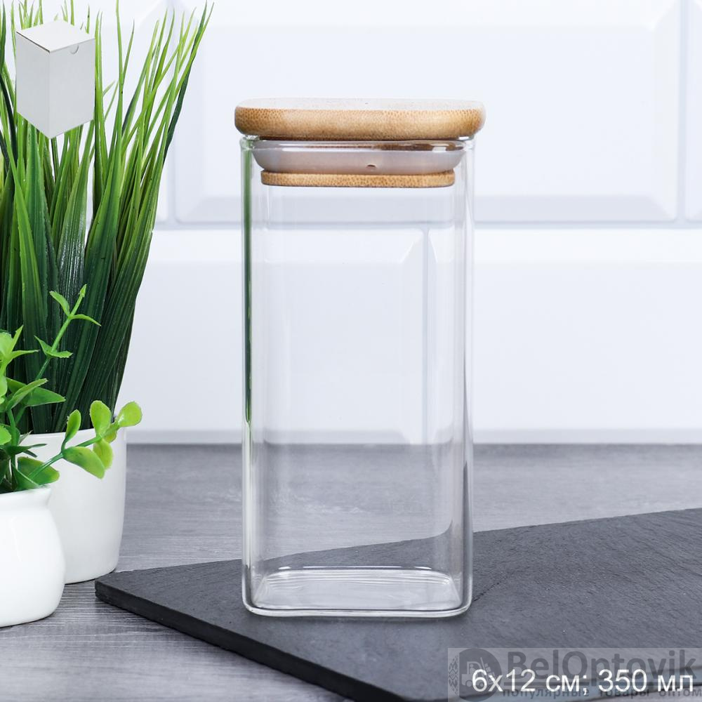 Банка квадратная бамбуковая крышка 350 мл диаметр 60/12 см / LCSC2107 /уп 120/