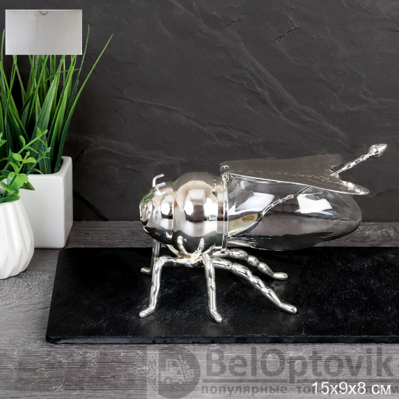 Ваза для сервировки 150 мл Пчела с ложкой Серебро / PS-904/уп 48/