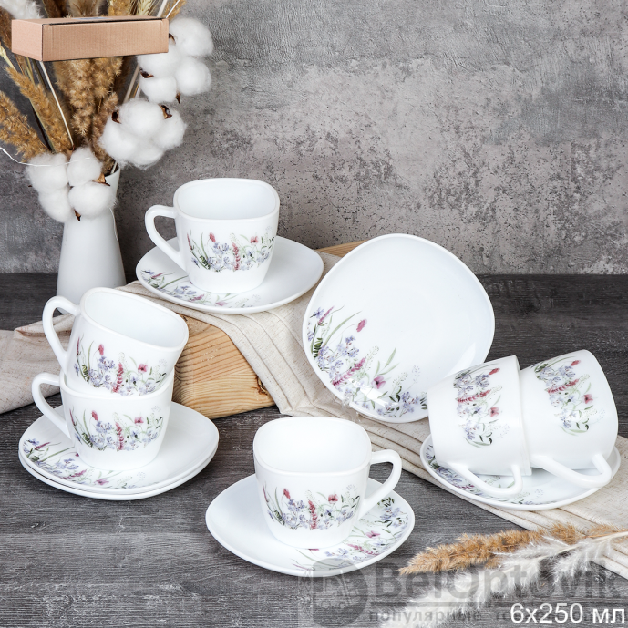 Чайная пара 2 предмета 250 мл квадратная / GRAY-FXB220/FBD220-6A (7521) /уп 48/ Луга
