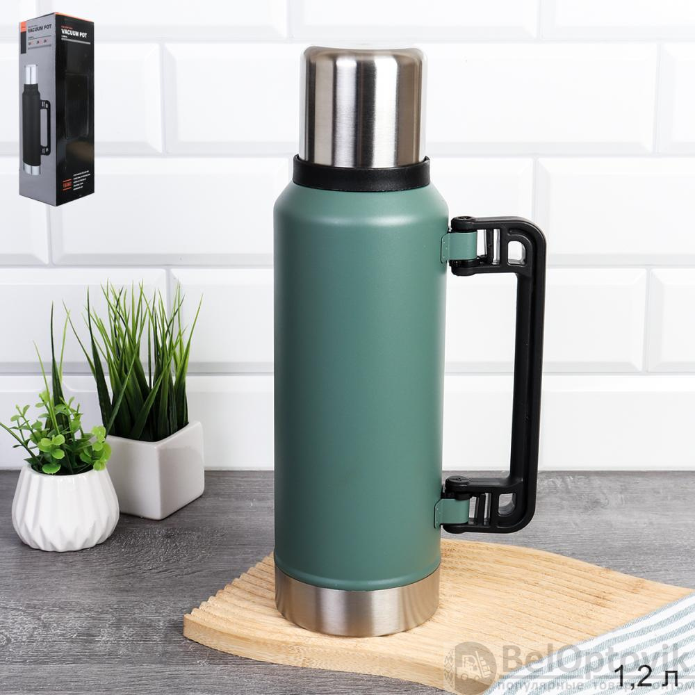 Термос 1,2 л со складной ручкой / STG-271 /уп 24/ Зеленый