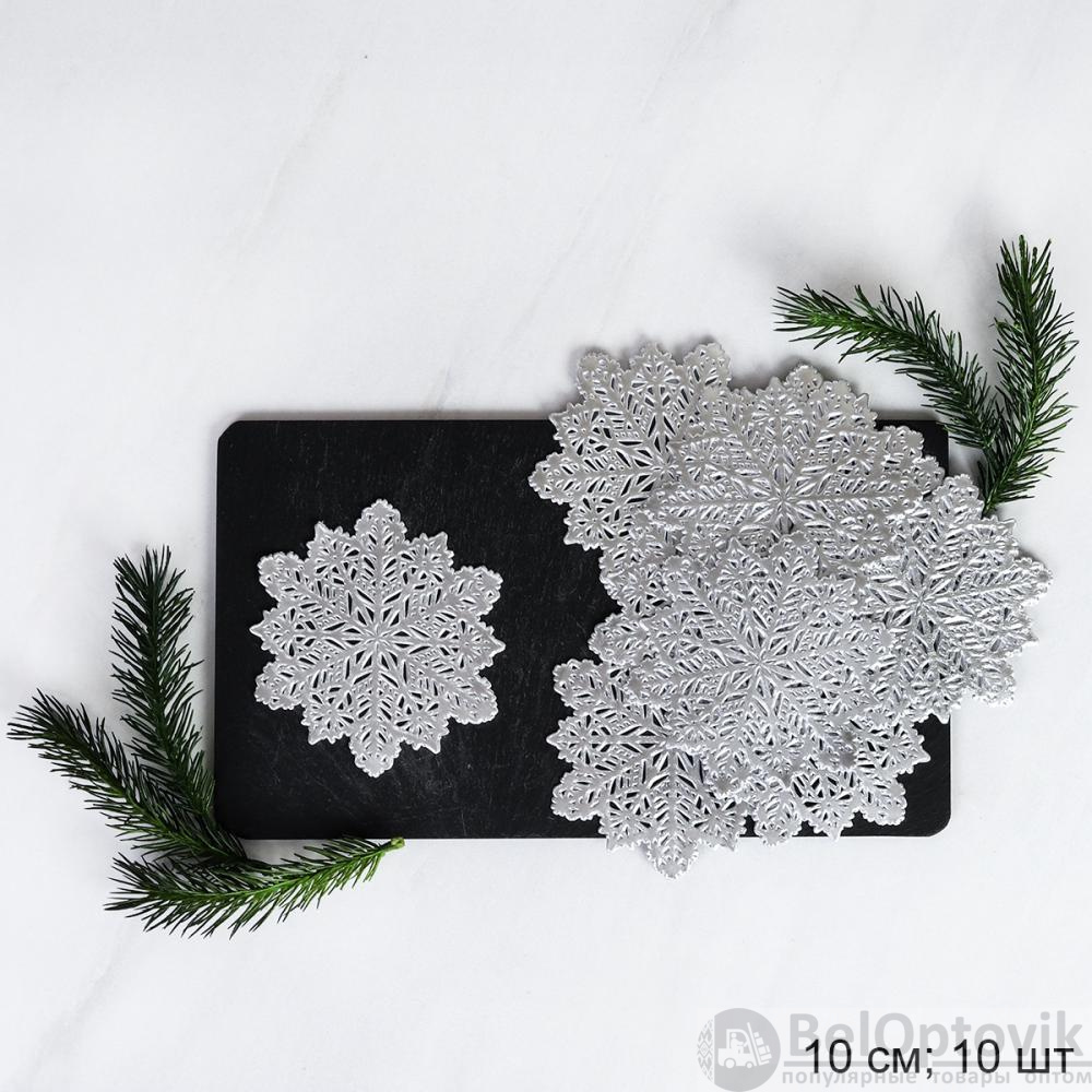 Подставка под кружку 10 см Снежинка набор 10 штук АКЦИЯ / WR41 /уп 200/серебро