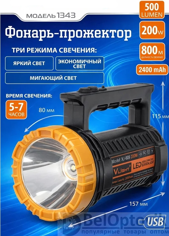 Три режима свечения: яркий свет, экономичный свет, мигающий свет.