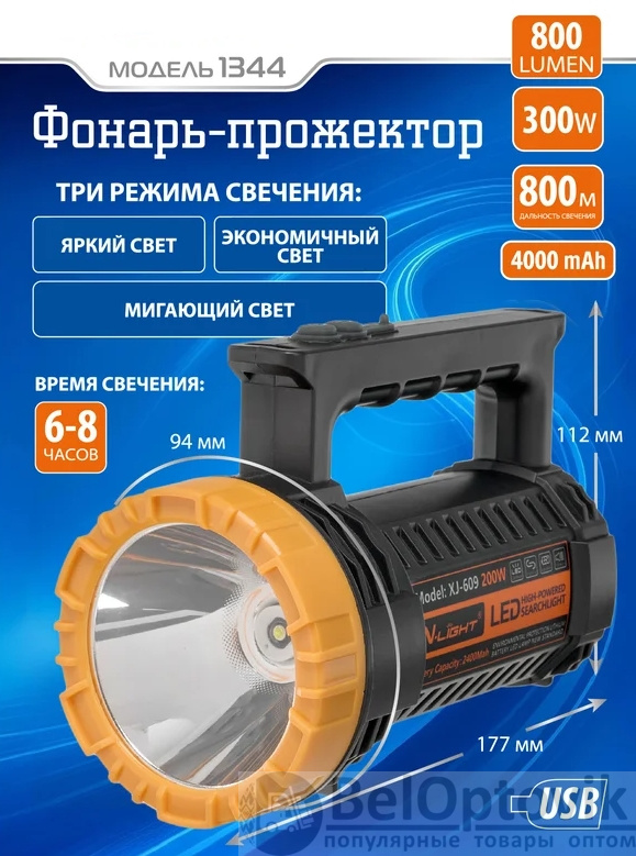 Комплектация: фонарь, кабель USB для зарядки.
