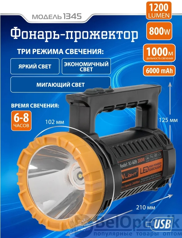 Три режима свечения: яркий свет, экономичный свет, мигающий свет.
