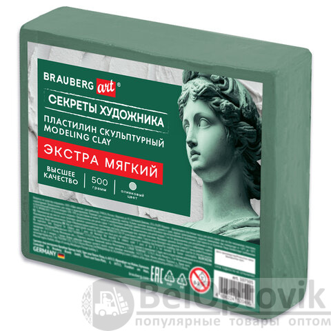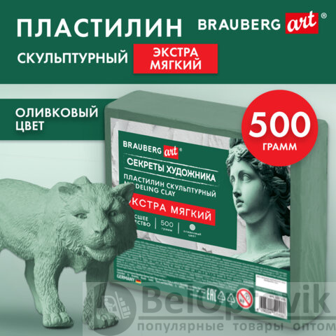 Пластилин скульптурный ЭКСТРА МЯГКИЙ ОЛИВКОВЫЙ "Секреты художника", 0,5 кг, BRAUBERG ART, 107505