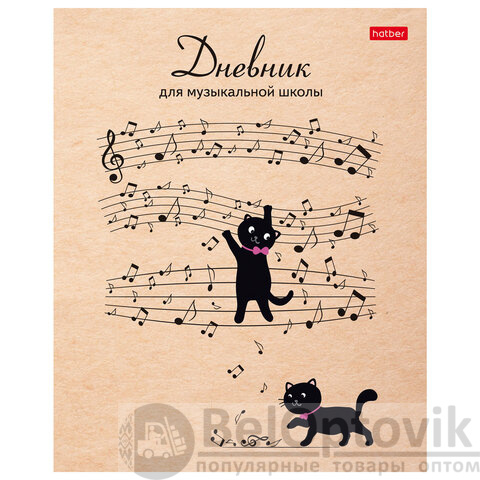Дневник для музыкальной школы HATBER с оригинальным дизайном обложки "Музыкальные котики".