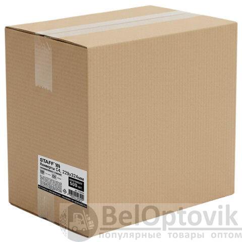 Конверты С4 (229х324 мм), отрывная лента, 100 г/м2, КОМПЛЕКТ 500 шт., STAFF, 118666