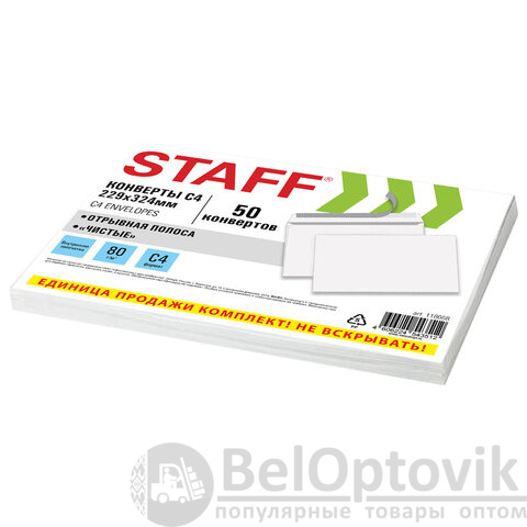 Конверт почтовый STAFF формата С4 предназначен для рассылки документов, журналов и и другой корреспонденции формата А4 без сложения.