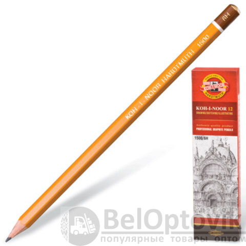 Карандаш чернографитный KOH-I-NOOR 1500, 1 шт., 6H, корпус желтый, заточенный, 150006H01170