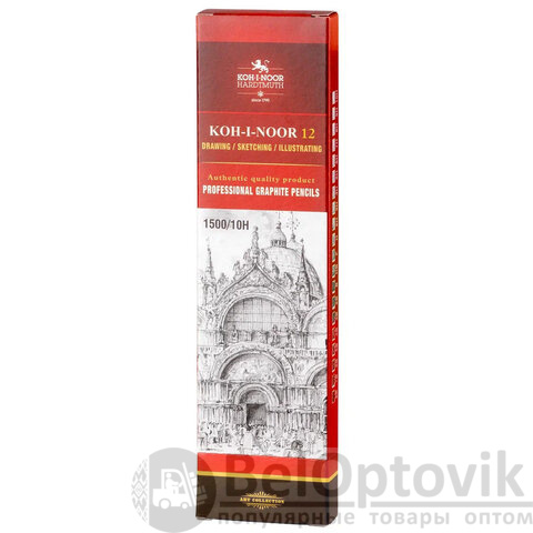 Карандаш чернографитный KOH-I-NOOR "1500", 1 шт., 10H, корпус желтый, заточенный, 150010H01170