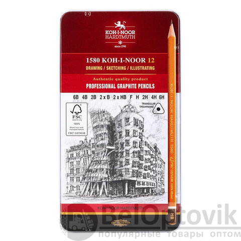 Чернографитный карандаш KOH-I-NOOR "1580" – универсальный помощник для обучения и разнообразных чертежных работ. Приобретайте чернографитный карандаш KOH-I-NOOR "1580" и оцените его высокое качество и удобство использования. Металлическая коробка набора будет идеальным вариантом подарка!