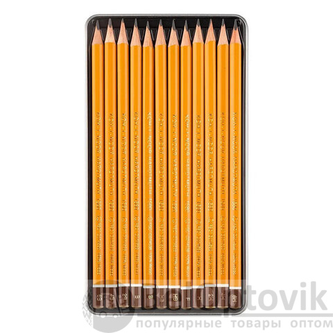 Карандаши чернографитные KOH-I-NOOR, НАБОР 12 шт., "Art" 6B-6H, без резинки, металлическая коробка, 1582012001PL