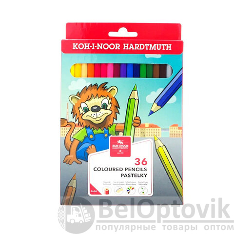 Карандаши цветные KOH-I-NOOR "LION" (36 цветов). Предназначены для рисования на бумаге и картоне. Подходят как для школьников, так и для детей дошкольного возраста старше 3 лет.