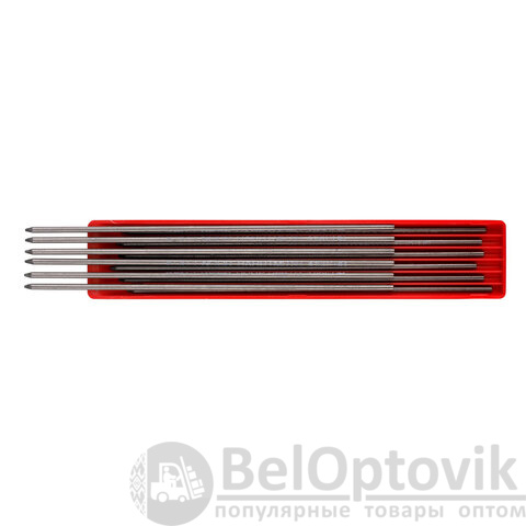 Стержни для цанговых карандашей толщиной 2 мм. Длина стержней 120 мм. Упакованы в пластиковый футляр по 12 штук, размер – 138x29x7 мм. В цанговом карандаше они не пачкают рук, а также снижен риск их поломки.