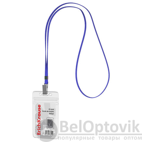 Бейдж вертикальный ERICH KRAUSE (62х91 мм), корпус прозрачный, цвет ленты синий, 63711