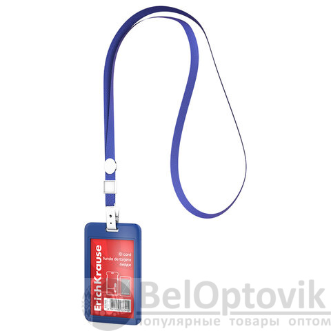 Бейдж вертикальный ERICH KRAUSE (54х85 мм), корпус синий, цвет ленты синий, слайдер, 63740