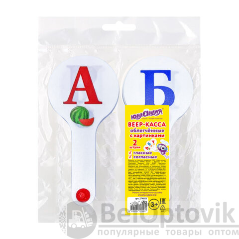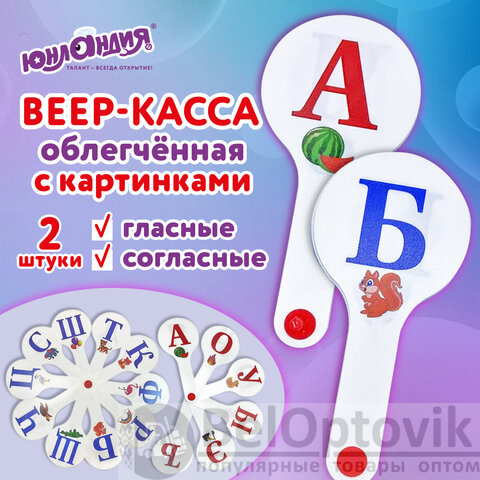 Веер-касса с картинками (гласные, согласные) ОБЛЕГЧЕННЫЕ, гибкие, НАБОР 2шт, ЮНЛАНДИЯ, 274053