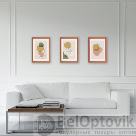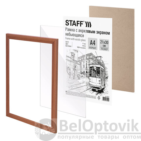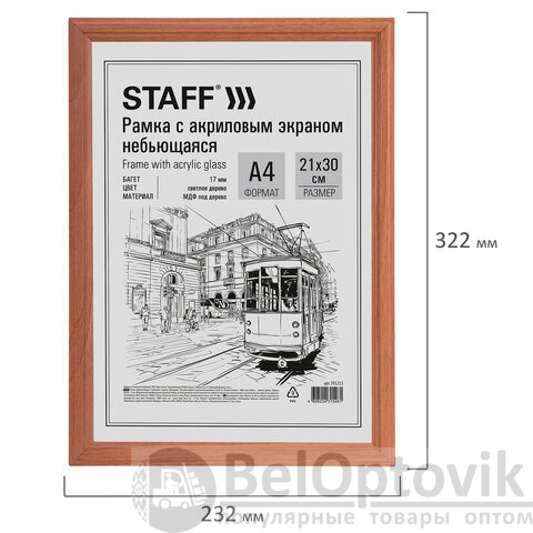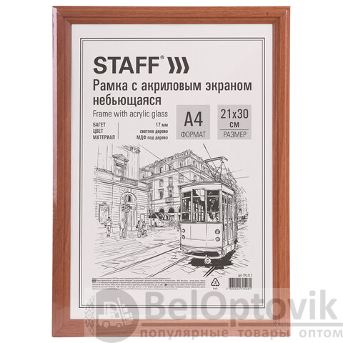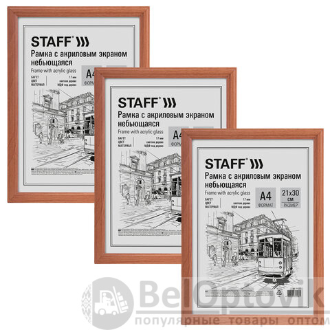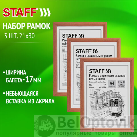Рамка 21х30 см небьющаяся, КОМПЛЕКТ 3 шт., багет 17 мм МДФ, STAFF "Carven", цвет светлое дерево, 391323