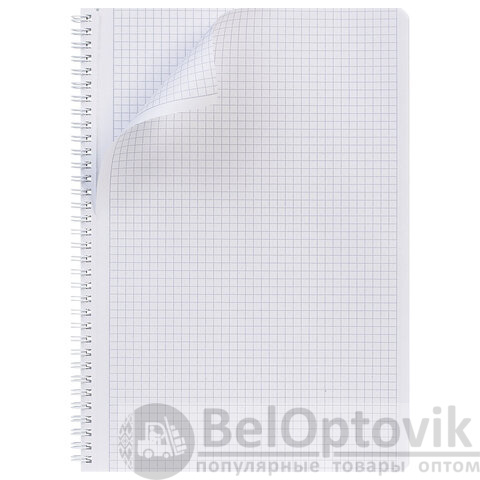 Тетрадь А4 формата, 96 листов. Материал обложки – мелованный картон. Вид отделки – ламинация Soft-touch. Внутренний блок – офсетная бумага 65 г/м2, клетка. Перфорация на отрыв. Тип скрепления – гребень.